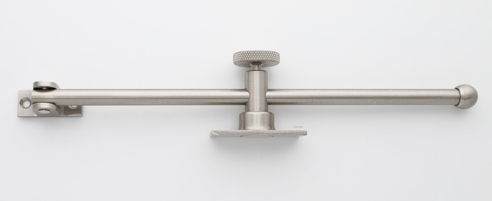 A traditional styled casement adjuster that uses a rod type design. Loosen the knob to let the rod slide and pivot, while the casement window opens. Once a desired window setting is reached, tighten the knob to keep the window in place. This adjustable stay is designed for outward swinging casement windows and can be used on either right- or left-hand swinging windows. With durability and luxury in mind, this casement adjuster is constructed from solid brass.